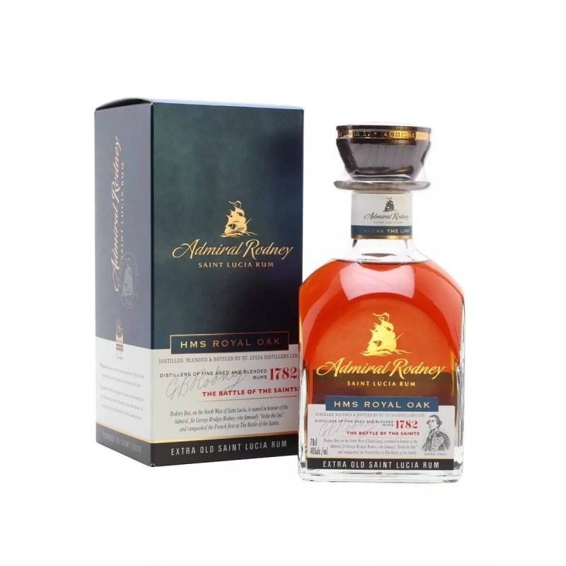 Admiral Rodney Royal Oak est un délicieux rhum de Sainte-Lucie aux notes de raisins secs, de pruneaux, d'épices tropicales, de chocolat et de chêne grillé. HMS Royal Oak est un assemblage de rhums vieillis entre 7 et 12 ans en fûts de bourbon chez St Lucia Distillers. Le HMS Royal Oak était l'un des navires britanniques qui sous le commandement de l'amiral Rodney, vainquit les Français et ouvrit la voie à la domination britannique des Caraïbes.