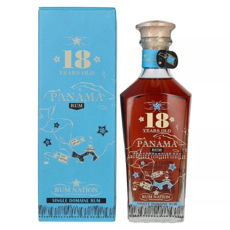 Rum Nation 18 ans Decanter est un rhum hors âge de style espagnol du Panama, embouteillé dans une magnifique carafe. La finesse de la distillation donne vie à un rhum léger d'une grande complexité aromatique et facile à boire. C'est un rhum doux, riche en fruits tropicaux, dattes et chocolat.