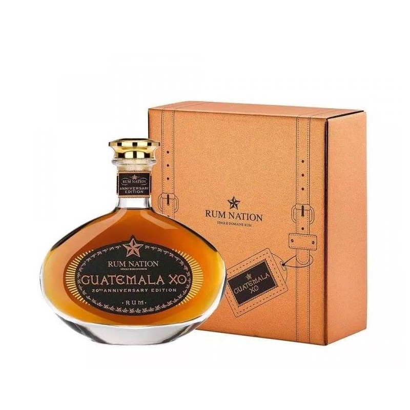 Rum Nation Guatemala Xo 20th Anniversary est un rhum hors âge du Guatemala élaboré pour fêter le 20éme anniversaire de la marque italienne Rum Nation. Ce rhum de mélasse a vieilli en fûts ex bourbon dans la région tropicale de Río Hondo au Guatemala puis il a été affiné en fûts de sherry oloroso et de pedro ximenez pendant 16 mois en Italie. Un rhum doux et élégant aux notes de vanille, de raisins secs et de cassonade.