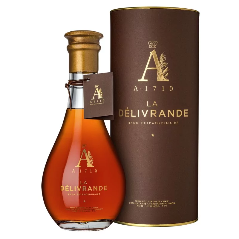 A1710 La Délivrande est le premier rhum distillé et élevé à l'Habitation du Simon, La Délivrande est un extraordinaire trésor. Ce rhum vieux pur jus de canne a vieilli pendant 6 ans pour grandir, s'arrondir entre mornes (collines) et océan. Cette édition se dévoile à travers des volutes de bois fumé précédant des notes de tabac blond et de confitures de fruits. La finale se teinte de chocolat et de fèves brûlées. Elégante et complexe, La Délivrande est le fruit du travail de A1710 guidé par la passion et l’authenticité.