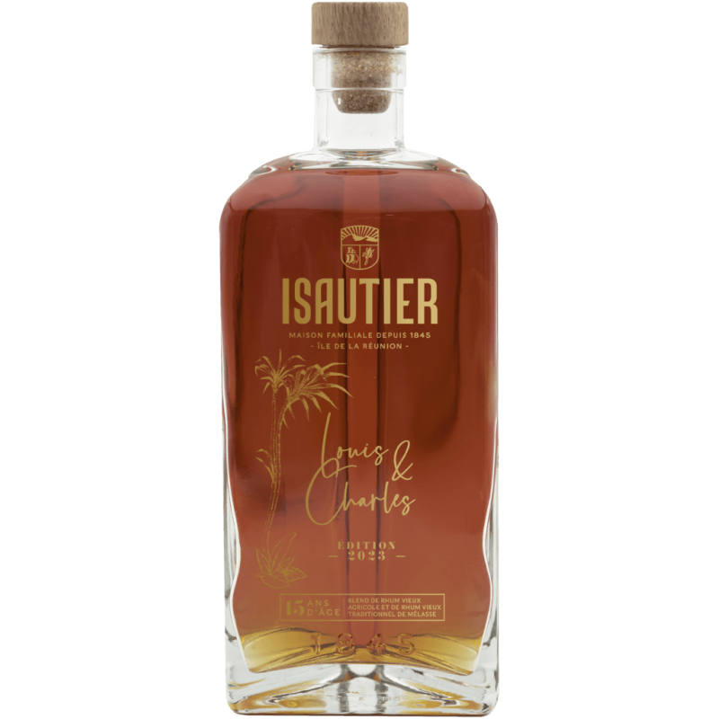 Isautier Louis & Charles 15 Ans est un rhum très vieux de la Réunion issu d'un assemblage de rhums agricoles et de rhums traditionnels de 15 ans jusqu’à 22 ans d’âge. Ce rhum rend hommage aux fondateurs de la distillerie Isautier en 1845, les frères Louis & Charles. Un rhum bien équilibré, subtil et riche en arômes. Une très belle cuvée à ne pas manquer.