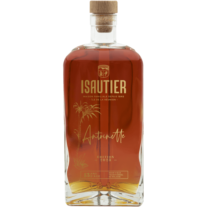 Isautier 13 Ans Antoinette 58% est un très vieux rhum traditionnel de mélasse provenant de la Réunion. Il a été distillé en colonne en 2006, il a vieilli d'abord en fûts neufs puis en fûts roux à grains fins. Cette cuvée rend hommage à Antoinette Isautier, première femme dirigeante de la Maison en 1865. C'est un rhum complexe et intense. Il offre des notes de chocolat, de vanille, de gingembre, de cacao et de fruits à noyau avec une finale complexe et savoureuse
