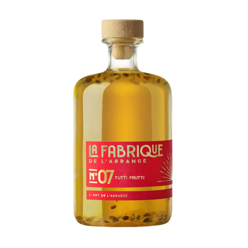 Tutti Frutti porte bien son nom : cette création N°7 célèbre les fruits que l’on croquerait à pleines dents lors d’une soirée estivale. Le fruit de la passion, cueilli au Vietnam, est sublimé par une infusion délicate de litchi, de rose et de thé blanc. Cette alliance originale, élaborée avec tout le savoir-faire de la Fabrique de l’Arrangé, offre une boisson spiritueuse exotique, gourmande et parfaitement équilibrée. Une invitation au voyage qui se déguste aussi bien pure qu’en cocktail.